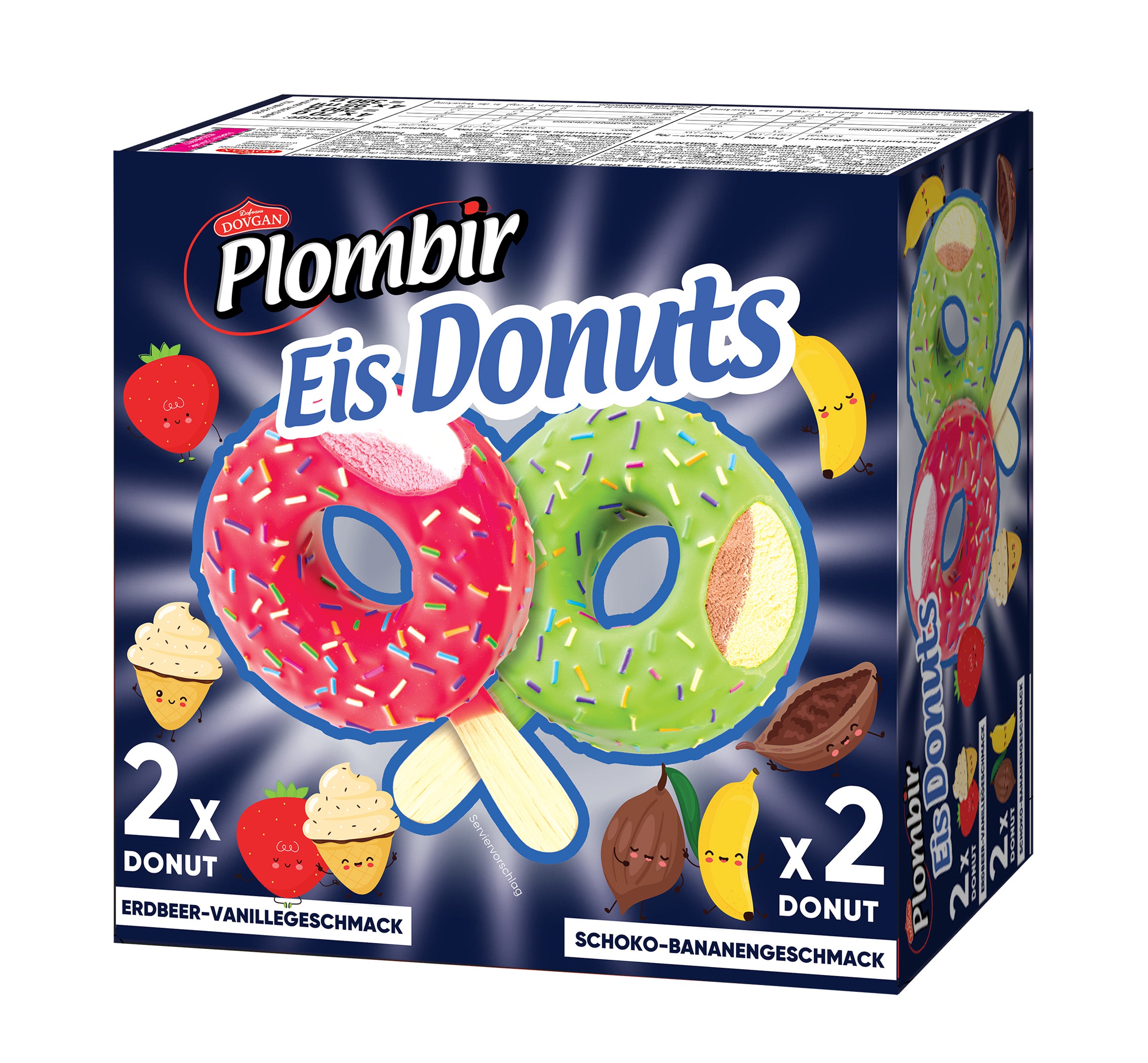 4 PLOMBIR ICE DONUTS FRAISE VANILLE ET CHOCOLAT BANANE 280GX7